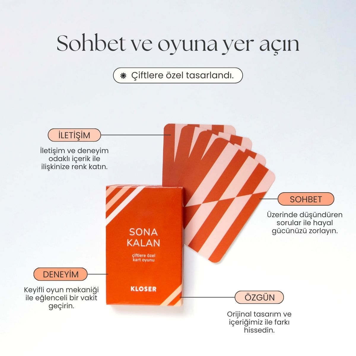 Çiftlere özel kart oyunu. Elinizdeki kartları bitirirken hem eğlenecek hem de derin sohbetlere yelken açacaksınız.