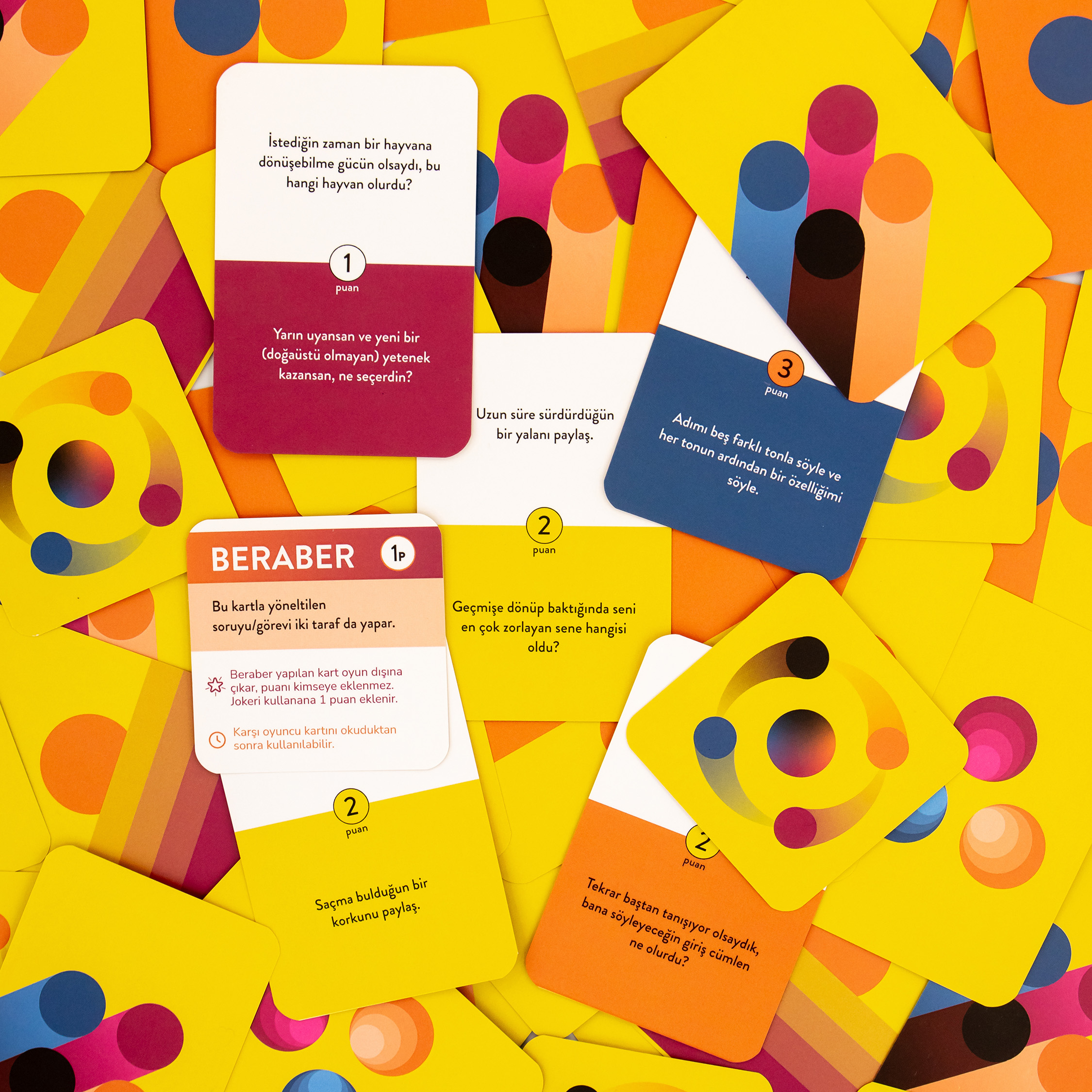 - Sohbet ve ilişki sorularının yanısıra eğlenceli, ortamı yumuşatan görevlerden oluşan toplam 80 kart içeriği bulunmaktadır.